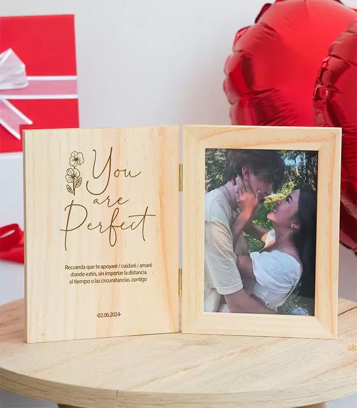 Captura y celebra momentos especiales con este marco de fotos personalizado en madera. Ideal para San Valentín, puedes añadir un nombre o un mensaje para hacer de este marco un recuerdo inolvidable.