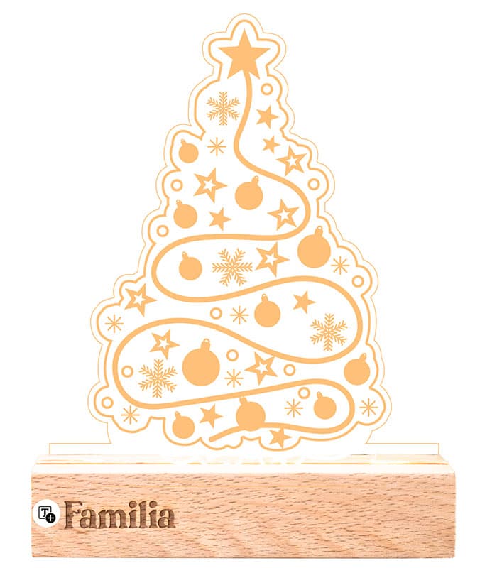 Lámpara en forma de árbol de Navidad con luz cálida, ideal para decorar cualquier espacio con un ambiente festivo y acogedor. · Dimensiones: Ancho 15 cm Alto 20 cm Largo 4.5 cm