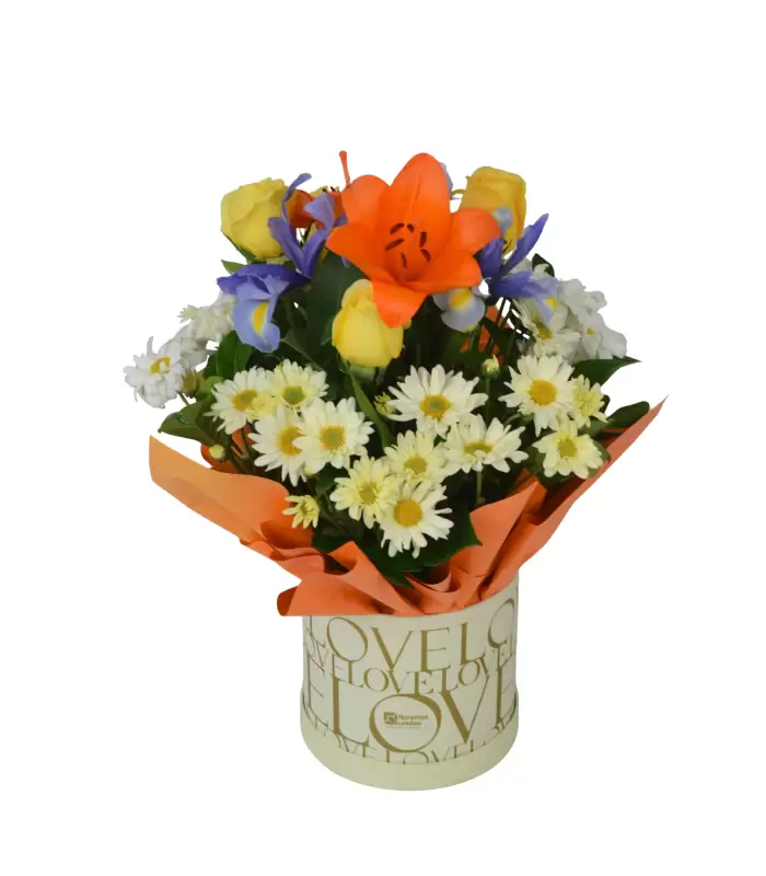 Sorprende con la ternura de este diseño floral. Una combinación fresca de rosas rosadas y margaritas en un box blanco impecable, decorada con un lazo. Es el regalo ideal para transmitir cariño y alegría de una forma...